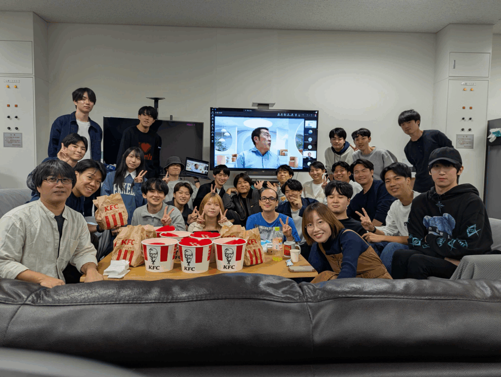 最後にみんなで記念撮影!📸 …と、モニターに注目してください(笑)