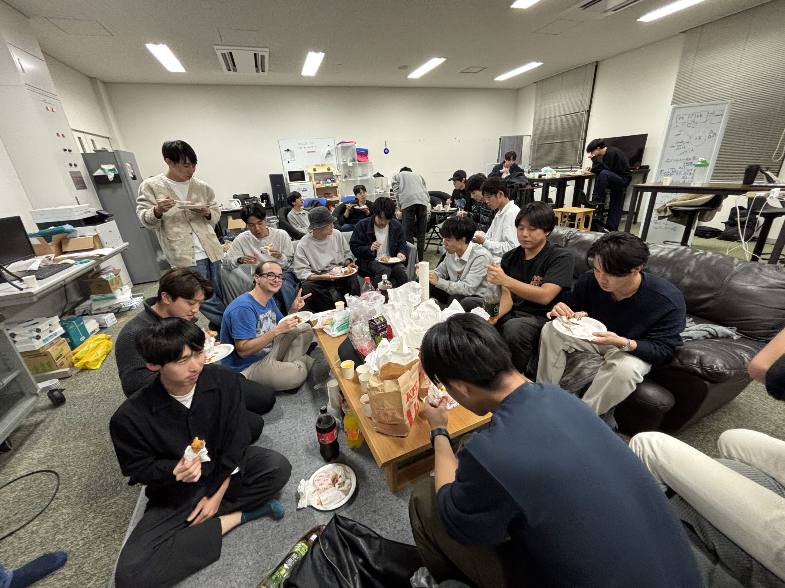 その記念すべき初日に、ケンタッキー&お菓子パーティで懇親会を行いました!